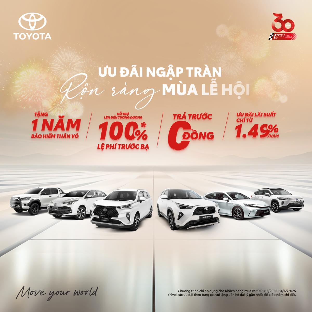 Không khí lễ hội đang dần rộn ràng khắp phố phường. Đây là thời điểm tuyệt vời để khởi động những chuyến đi cuối năm đầy hứng khởi. Cùng Toyota lăn bánh trên hành trình khám phá mới, tận hưởng ưu đãi hấp dẫn dành riêng cho tháng 12 và sẵn sàng đón chào mùa lễ hội theo cách của riêng bạn.